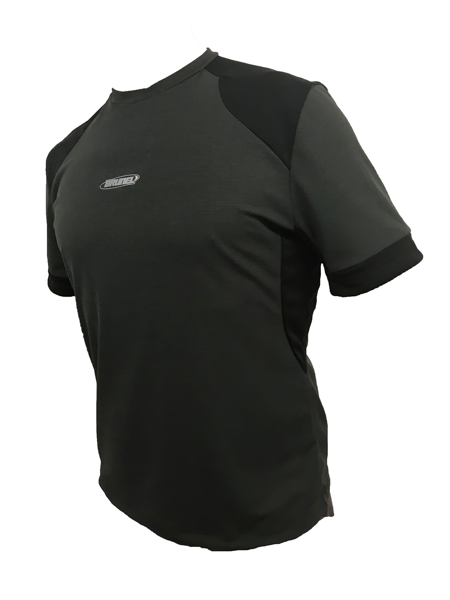 Maglietta ergonomica anti sudore a girocollo con manica a giro realizzata con inserti su spalle, maniche e schiena, disponibile nella versione verde/nero e verde/orange.