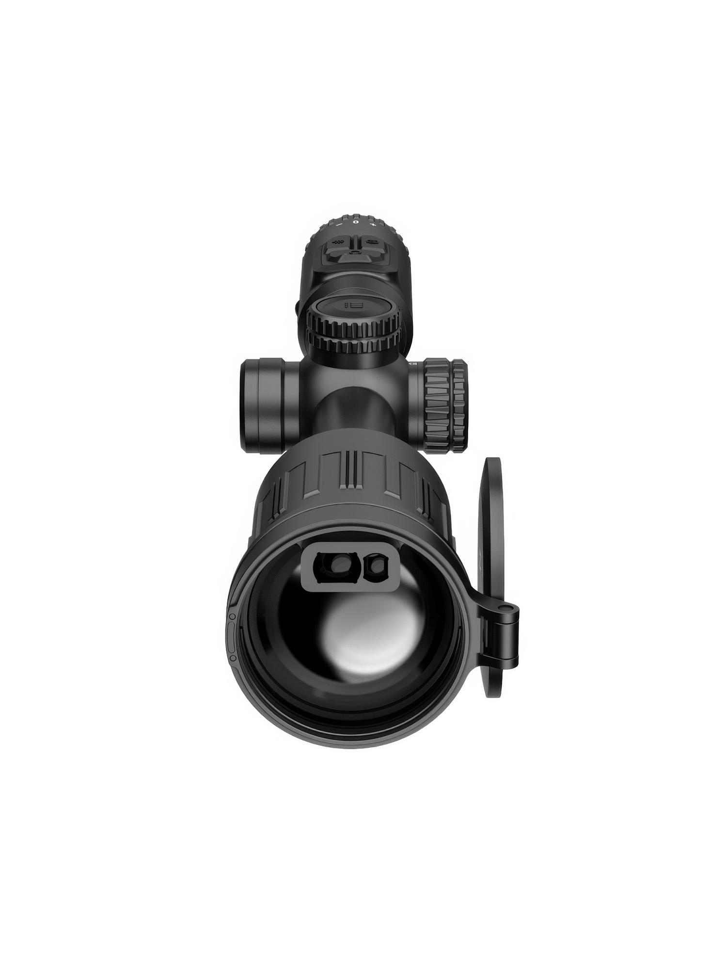 L'innovativo tubo termico 1280 con obiettivo LRF incorporato da 1000m garantisce una nitidezza d'immagine ultra-HD e dimensioni compatte. L'obiettivo termico da 60 mm e l'ingrandimento di base di 2,5x forniscono un ampio campo visivo fino a 25,6 m @100 m e un raggio di rilevamento ultra-lungo di 3100 m, offrendo ai cacciatori notevoli vantaggi sia nei campi aperti che nelle regioni boschive.